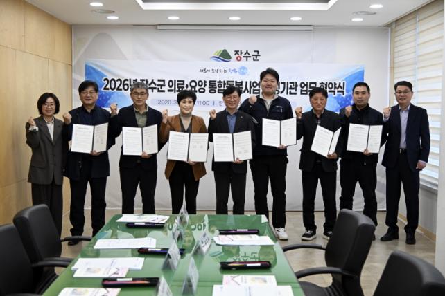 [µ¥Àϸ®Àü³² = ±è¼ºÇö ±âÀÚ] Àå¼ö±ºÀº 23ÀÏ ±º ¼ÒÅëȸÀǽǿ¡¼ ÀÇ·á‧¿ä¾ç µî ÅëÇÕµ¹º½ ¼ºñ½ºÀÇ ¾ÈÁ¤ÀûÀÎ Á¦°ø°ú Çù·Âü°è ±¸ÃàÀ» À§ÇØ º´¿ø µ¿Çà, ÀÏ»ó»ýȰ µ¹º½ µî ÅëÇÕµ¹º½ Á¦°ø±â°ü 8°÷°ú ¾÷¹«Çù¾àÀ» ü°áÇß´Ù.