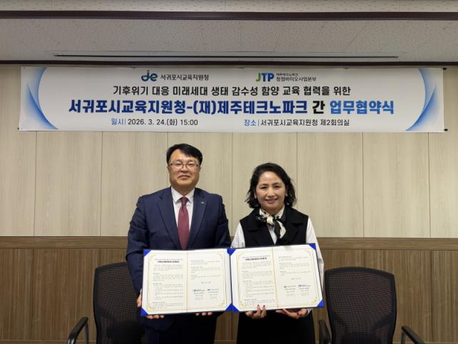 [µ¥Àϸ®Àü³² = ÃÖ¼ö¿¬ ±âÀÚ] ¼±ÍÆ÷½Ã±³À°Áö¿øÃ»(±³À°Àå ±èÁöÇý)Àº 24ÀÏ ±³À°Áö¿øÃ»¿¡¼ (Àç)Á¦ÁÖÅ×Å©³ëÆÄÅ©(¿øÀå Áö¿µÈç) ûÁ¤¹ÙÀÌ¿À»ç¾÷º»ºÎ¿Í ¹Ì·¡¼¼´ëÀÇ »ýÅ °¨¼ö¼º ÇÔ¾ç°ú ±âÈÄȯ°æ¡¤»ýÅÂÀüȯ±³À° Ȱ¼ºÈ¸¦ À§ÇÑ ¾÷¹«Çù¾àÀ» ü°áÇß´Ù.