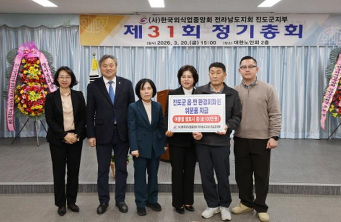 ¶ÇÇÑ, (»ç)Çѱ¹¿Ü½Ä¾÷Áß¾Óȸ Áøµµ±ºÁöºÎ¿¡¼ Áö¿ª»çȸ¸¦ À§ÇÑ ³ª´® Ȱµ¿ÀÇ Çϳª·Î ȯ°æ¹ÌÈ¿øµéÀ» À§ÇØ 100¸¸ ¿ø »ó´çÀÇ ¹°Ç°À» Áøµµ±º¿¡ ±âŹÇϸç, µû¶æÇÑ ÀÌ¿ô»ç¶ûÀ» ½ÇõÇß´Ù.