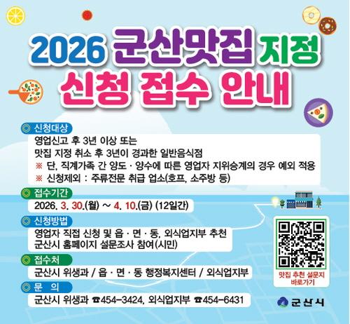 ¸ðÁý ±â°£Àº 3¿ù 30ÀϺÎÅÍ 4¿ù 10ÀϱîÁöÀ̸ç, ½Ã¹Î ´©±¸³ª ¸ÀÁýÀ» ÃßõÇÒ ¼ö ÀÖ´Ù. ÃßõÀº ±º»ê½Ã ȨÆäÀÌÁö¸¦ ÅëÇÑ ½Ã¹ÎÂü¿© ¼³¹®Á¶»ç, ¿µ¾÷ÀÚ Á÷Á¢ ½Åû, À¾¡¤¸é¡¤µ¿ ÇàÁ¤º¹Áö¼¾ÅÍ ¹× Çѱ¹¿Ü½Ä¾÷Áß¾Óȸ ±º»ê½ÃÁöºÎ µî °ü°è±â°üÀÇ ÃßõÀ» ÅëÇØ ÀÌ·ç¾îÁø´Ù. À̸¦ ÅëÇØ ±º»êÀÇ ¼ûÀº ¸ÀÁýÀ» ¹ß±¼ÇÒ °èȹÀÌ´Ù.
