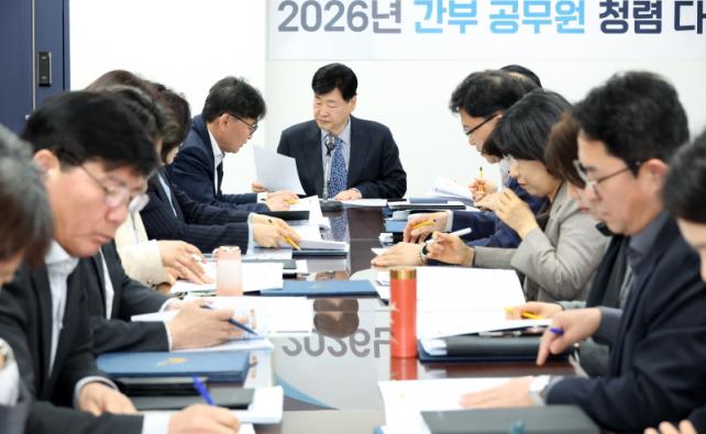 [µ¥Àϸ®Àü³² = ±è¼ºÇö ±âÀÚ] ÀüÁֽô 30ÀÏ ½Ãû ȸÀǽǿ¡¼ ½ÃÀåÀÇ Áö¹æ¼±°Å ¿¹ºñÈĺ¸ µî·Ï¿¡ µû¸¥ ÇàÁ¤ °ø¹éÀ» ¹æÁöÇϰí, °øÁ÷»çȸÀÇ Ã»·Å ÀÇÁö¸¦ ´ÙÁö±â À§ÇÑ ¡®2026³â ¹ÝºÎÆÐ¡¤Ã»·Å½ÃÃ¥ °øÀ¯ ȸÀÇ¡¯¸¦ °³ÃÖÇß´Ù.