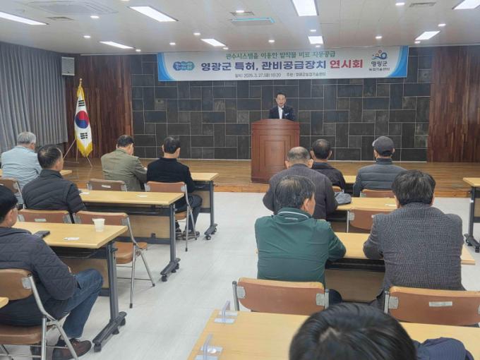À̹ø ¿¬½Ãȸ´Â ³ó¾÷ÀÎÀÇ ³ëµ¿·Â ºÎ´ãÀ» ÁÙÀ̰í ÀÛ¹° »ýÀ°¿¡ ÃÖÀûÈµÈ ¾çºÐÀ» ÀÚµ¿À¸·Î °ø±ÞÇÏ´Â °üºñ°ø±Þ ±â¼úÀ» ÇöÀå¿¡¼ Á÷Á¢ ½Ã¿¬Çϱâ À§ÇØ ¸¶·ÃµÆÀ¸¸ç, Áö¿ª ³ó¾÷ÀÎ 30¿©¸íÀÌ Âü¼®ÇØ ³ôÀº °ü½ÉÀ» º¸¿´´Ù.