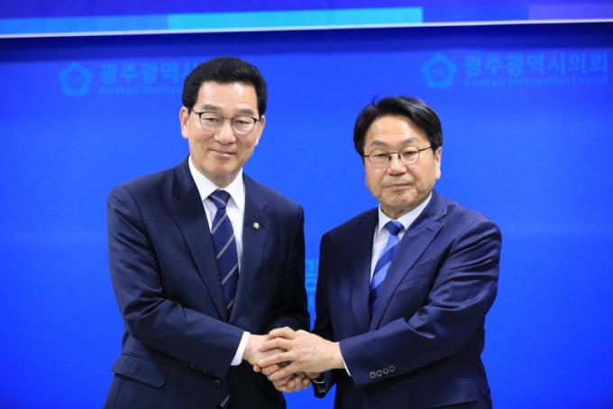 ½Å È帴 ¡°ÀÌÀç¸í Á¤ºÎÀÇ ¼º°ø°ú Àü³²¡¤±¤ÁÖÀÇ ¹Ì·¡¸¦ À§ÇØ ±â²¨ÀÌ °á´ÜÇØÁֽа±âÁ¤ ½ÃÀå´Ô²² ±íÀº À§·Î¿Í Á¸°æÀÇ ¸¶À½À» ¹ÙÄ£´Ù¡±¸ç ¡°µ¹¾Æ¿Â ±¤ÁÖ, ÇϳªµÈ Àü³²Àº ÀúÀÇ ¿À·£ ¼Ò¸ÁÀ̾ú°í Á¦ °¡½¿ ¼Ó ºÏ±Ø¼ºÀº ¾ðÁ¦³ª Àü³²¡¤±¤ÁÖ ÅëÇÕÀ̾ú´Ù¡±°í ¹àÇû´Ù.