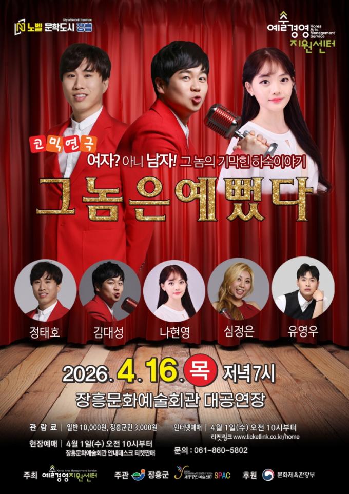 À̹ø °ø¿¬Àº¡®2026 ¿¹¼ú°æ¿µÁö¿ø¼¾ÅÍ °ø¿¬¿¹¼ú Áö¿ªÀ¯Åë Áö¿ø»ç¾÷¡¯¿¡ ¼±Á¤µÈ ÀÛǰÀ¸·Î, ±º¹Îµé¿¡°Ô ½Ã¿øÇÑ ¿ôÀ½°ú °¨µ¿À» ¼±»çÇÒ ¿¹Á¤ÀÌ´Ù.