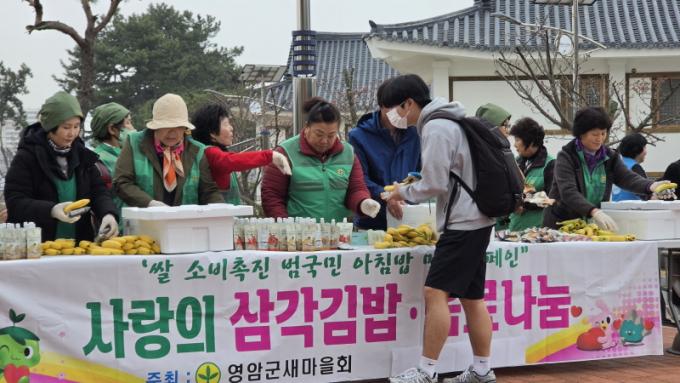 À̳¯ Çà»ç´Â À̸¥ »õº®ºÎÅÍ ÁغñµÆ´Ù. »õ¸¶À»È¸ ȸ¿øµéÀº ¿ÀÀü 4½ÃºÎÅÍ Á÷Á¢ »ï°¢±è¹äÀ» ¸¸µé°í Æ÷ÀåÇϸç ÇлýµéÀ» ¸ÂÀÌÇÒ Áغñ¸¦ ¸¶ÃÆ´Ù. ÁغñµÈ »ï°¢±è¹ä°ú À½·á´Â µî±³ÇÏ´Â Çлý°ú ±³Á÷¿ø 500¸í¿¡°Ô Àü´ÞµÇ¸ç µû¶æÇÑ ÀÀ¿øÀÇ ¸¶À½À» ÀüÇß´Ù. ¿©±â¿¡ ¹Ù³ª³ª¸¦ ´õÇÑ ¾ÆÄ§ ²Ù·¯¹Ì·Î dz¼ºÇÔÀ» ´õÇß´Ù.