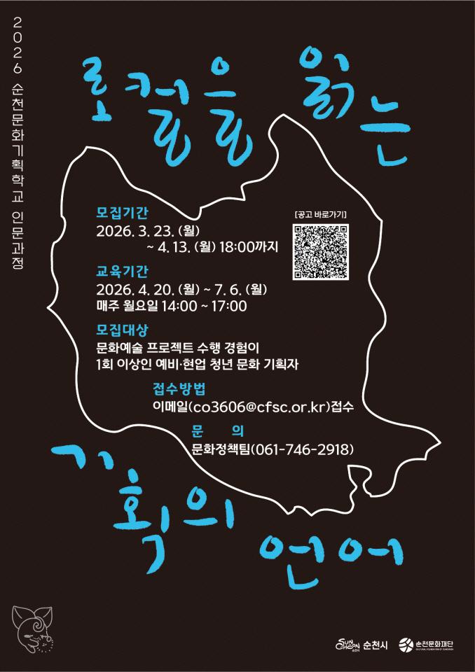 [µ¥Àϸ®Àü³² = ÃÖ¼ö¿¬ ±âÀÚ] (Àç)¼øÃµ¹®ÈÀç´ÜÀº ¿À´Â 13ÀϱîÁö ¡®2026 ¼øÃµ¹®È±âȹÇб³ Àι®°úÁ¤ ¡¸·ÎÄÃÀ» Àд ±âȹÀÇ ¾ð¾î¡¹(ÀÌÇÏ Àι®°úÁ¤)¡¯ ¼ö°»ýÀ» °ø°³ ¸ðÁýÇÑ´Ù.