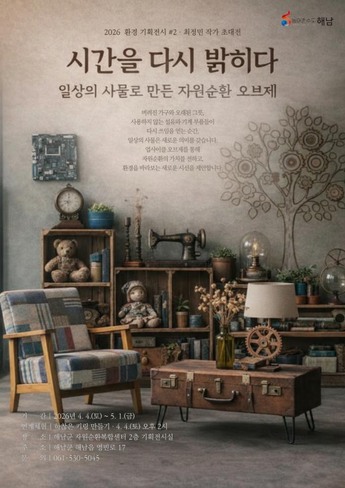 [µ¥Àϸ®Àü³² = ÃÖ¼ö¿¬ ±âÀÚ] ÇØ³²±ºÀÚ¿ø¼øÈ¯º¹ÇÕ¼¾ÅÍ´Â 4¿ù 4ÀϺÎÅÍ 5¿ù 1ÀϱîÁö ȯ°æ±âȹ Àü½Ã¡®½Ã°£À» ´Ù½Ã ¹àÈ÷´Ù–ÀÏ»óÀÇ »ç¹°·Î ¸¸µç ÀÚ¿ø¼øÈ¯ ¿ÀºêÁ¦¡¯¸¦ ¼±º¸ÀδÙ.