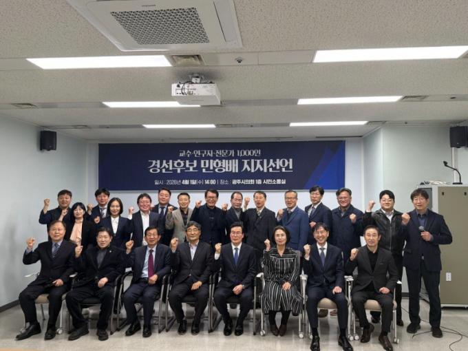 [µ¥Àϸ®Àü³² = ÃÖ¼ö¿¬ ±âÀÚ] Àü³²¡¤±¤ÁÖ Áö¿ª ´ëÇб³¼ö¿Í ¿¬±¸ÀÚ, Àü¹®°¡ 1000¸íÀÌ 40³â ¸¸¿¡ ¸ÂÀÌÇÏ´Â ÇàÁ¤ ÅëÇÕÀÇ ¼º°øÀ» À§ÇØ ´õºÒ¾î¹ÎÁÖ´ç Àü³²±¤ÁÖÅëÇÕÆ¯º°½ÃÀå °æ¼± Èĺ¸ÀÎ ¹ÎÇü¹è ±¹È¸ÀÇ¿ø(±¤ÁÖ ±¤»ê±¸À»)¿¡ ´ëÇÑ ÁöÁö¸¦ °ø½Ä ¼±¾ðÇß´Ù.