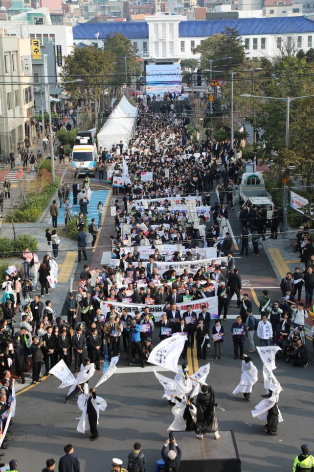 ¿ÀÈÄ 5½Ã°æ ¼¼ ÇàÁø´ÜÀÌ ÇÑÀÚ¸®¿¡ ÇÕ·ùÇÑ µÚ Á¦ÁÖ¹®¿¹È¸°ü±îÁö °øµ¿ ÇàÁøÀ» À̾´Ù. ÇÕ·ù ÁöÁ¡¿¡¼´Â Èñ»ýÀÚ 1¸¸ 5,218¸íÀ» »ó¡ÇÏ´Â ´ëÇü Çö¼ö¸·À» ÇàÁø´ÜÀÌ Á÷Á¢ Àü´ÞÇÏ´Â »ó¡ ÆÛÆ÷¸Õ½º°¡ ÆîÃÄÁ® ¡®±â¾ïÀÇ °è½Â¡¯À» ´«À¸·Î È®ÀÎÇÏ´Â ¼ø°£À» ¸¸µé¾î³Â´Ù.