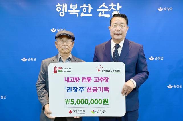 [µ¥Àϸ®Àü³² = ±è¼ºÇö ±âÀÚ] ¼øÃ¢±º ¹Î¼Ó¸¶À»¿¡ À§Ä¡ÇÑ ³»°íÇâ ÀüÅë °íÃßÀå ´ëÇ¥ ±ÇÀåÁÖ¡¤¾ç³»½Â ºÎºÎ´Â ÃÖ±Ù ¼øÃ¢±ºÃ»À» ¹æ¹®ÇØ Áö¿ªÀÇ ¾î·Á¿î ÀÌ¿ôÀ» À§ÇØ »ç¿ëÇØ ´Þ¶ó¸ç ¼º±Ý 500¸¸ ¿øÀ» ±âÅ¹ÇØ Áö¿ª»çȸ¿¡ µû¶æÇÑ °¨µ¿À» ÀüÇß´Ù.
