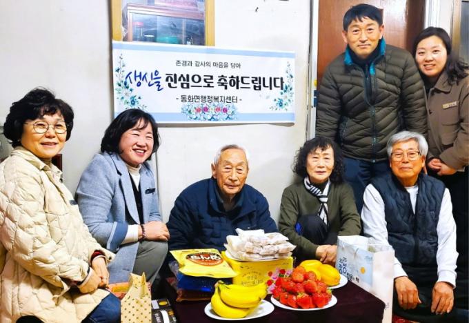 µ¿È¸é¿¡ µû¸£¸é Áö³ 3¿ù, Áö¿ª ³»¿¡¼ °¡Àå ¿¬¼¼°¡ ³ôÀº ±èÁ¾È¯(102¼¼) ¾î¸£½ÅÀÇ »ý½ÅÀ» ¸Â¾Æ »ýÀÏ»óÀ» Â÷·Á µå¸®°í ÃàÇÏÀÇ ½Ã°£À» º¸³Â´Ù.