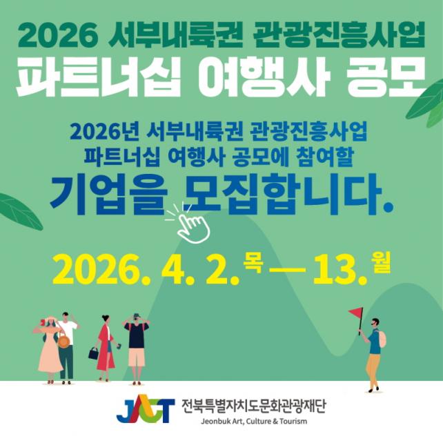 [µ¥Àϸ®Àü³² = ±è¼ºÇö ±âÀÚ] ÀüºÏ¹®È°ü±¤Àç´Ü(ÀÌÇÏ Àç´Ü, ´ëÇ¥ÀÌ»ç À̰æÀ±)ÀÌ ¡®2026 ¼ºÎ³»·ú±Ç °ü±¤ÁøÈï»ç¾÷¡¯ÀÇ ÀÏȯÀ¸·Î ¼ºÎ³»·ú±Ç ¿¬°è¡¤Ã¼·ùÇü °ü±¤»óǰÀ» ¿î¿µÇÒ ÆÄÆ®³Ê½Ê ¿©Çà»ç¸¦ ¸ðÁýÇÑ´Ù°í ¹àÇû´Ù.