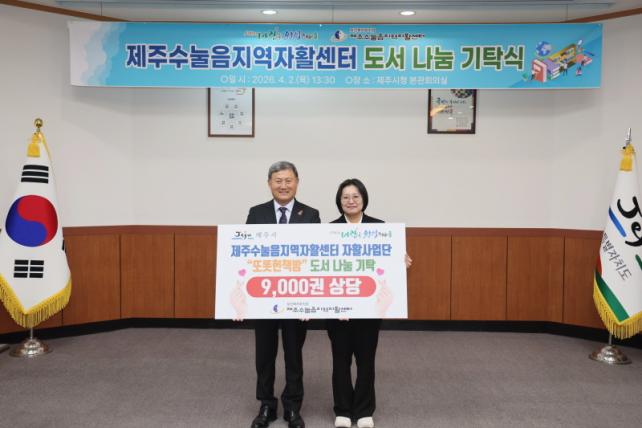 [µ¥Àϸ®Àü³² = ÃÖ¼ö¿¬ ±âÀÚ] Á¦Áֽô 4¿ù 2ÀÏ(¸ñ) ½Ãû º»°ü ȸÀǽǿ¡¼ Á¦ÁÖ¼ö´À½Áö¿ªÀÚȰ¼¾ÅÍ¿¡ µµ¼ 9õ¿© ±ÇÀ» Àü´ÞÇÏ´Â ¡®µµ¼ ³ª´® ±âʽġ¯À» °³ÃÖÇß´Ù.