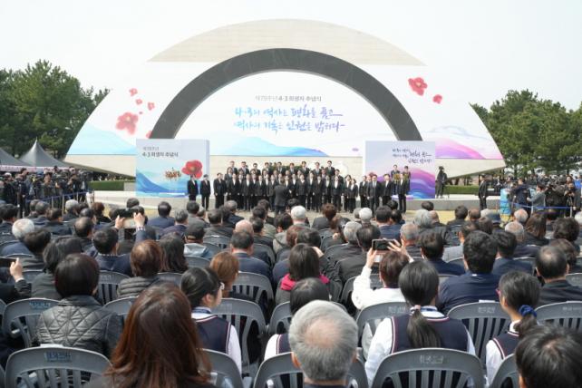 [µ¥Àϸ®Àü³² = ÃÖ¼ö¿¬ ±âÀÚ] Á¦ÁÖ4¡¤3ÀÇ ±â·ÏÀÌ ¼¼°èÀÇ ±â¾ïÀÌ µÈ ÀÌÈÄ Ã³À½ ¸Â´Â Á¦78ÁÖ³â 4¡¤3Èñ»ýÀÚ Ãß³ä½ÄÀÌ 3ÀÏ Á¦ÁÖ4¡¤3ÆòȰø¿ø¿¡¼ ºÀÇàµÆ´Ù.