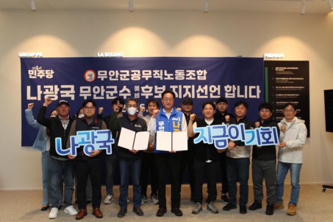 [µ¥Àϸ®Àü³² = ÃÖ¼ö¿¬ ±âÀÚ] ¹«¾È±º °ø¹«Á÷ ³ëµ¿Á¶ÇÕÀÌ ³ª±¤±¹ ´õºÒ¾î¹ÎÁÖ´ç ¹«¾È±º¼ö ¿¹ºñÈĺ¸¿¡ ´ëÇÑ ÁöÁö¸¦ °ø½Ä ¼±¾ðÇß´Ù.
