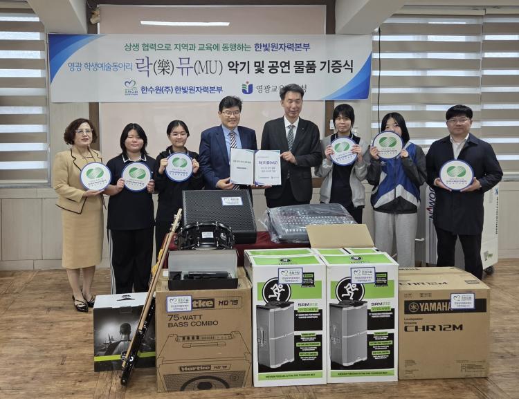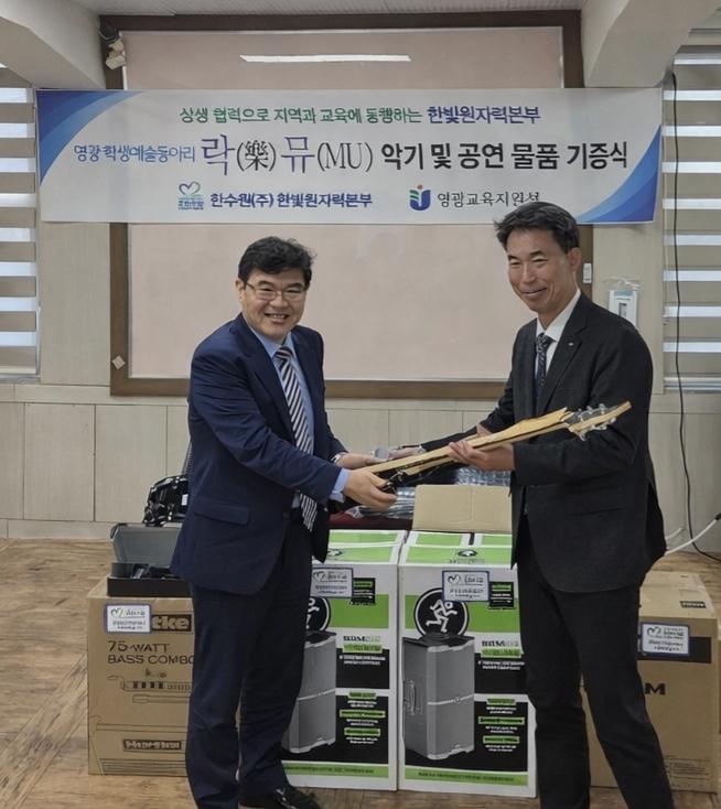 ±è¼º¸é ÇѺû¿øÀڷº»ºÎÀå(¿À¸¥ÂÊ)°ú Á¤º´±¹ ¿µ±¤±³À°Àå(¿ÞÂÊ)ÀÌ ¡®µ¿¾Æ¸® ¶ô¹Â(MU)¡¯ Áö¿øÀ» À§ÇÑ ¾Ç±â Àü´Þ½ÄÀ» ÁøÇàÇÏ¸ç ±â³äÃÔ¿µÀ» Çϰí ÀÖ´Ù. À̹ø Áö¿øÀº û¼Ò³â ¹®È¿¹¼ú Ȱµ¿ ±â¹Ý °È¿Í Áö¿ª »ó»ý Çù·ÂÀÇ ÀÏȯÀ¸·Î ÃßÁøµÆ´Ù. /»çÁø:¿µ±¤±³À°Áö¿øÃ» Á¦°ø