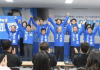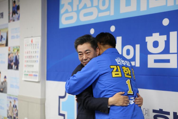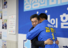 ´õºÒ¾î¹ÎÁÖ´ç À强±º¼ö °æ¼±À» ¾ÕµÎ°í À¯¼º¼ö Èĺ¸(¿ÞÂÊ)¿Í ±èÇÑÁ¾ Èĺ¸(¿À¸¥ÂÊ)°¡ ÁöÁö ¼±¾ð Á÷ÈÄ Æ÷¿ËÀ» ³ª´©¸ç ¿¬´ëÀÇ ¸Þ½ÃÁö¸¦ Àü´ÞÇϰí ÀÖ´Ù. /»çÁø:µ¶ÀÚ Á¦°ø