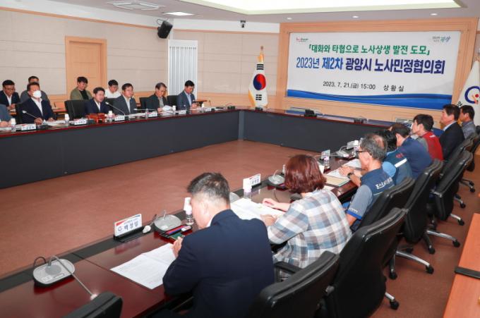 [µ¥Àϸ®Àü³² = ÃÖ¿µ¹Î ±âÀÚ] ±¤¾ç½Ã´Â Áö³ 21ÀÏ ½Ãû »óȲ½Ç¿¡¼ ¡®2023³âµµ Á¦2ȸ ³ë»ç¹ÎÁ¤ÇùÀÇȸ¡¯¸¦ °³ÃÖÇϰí Àû±ØÀûÀÎ ÁßÀç³ë·Â¿¡ ³ª¼¹´Ù°í ¹àÇû´Ù.