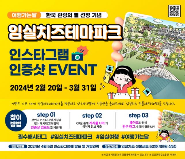 14ÀÏ ÀӽDZº¿¡ µû¸£¸é Çѱ¹°ü±¤ÀÇ º°¿¡ ¼±Á¤µÈ ÀÓ½ÇÀÇ ·£µå¸¶Å©¡®ÀÓ½ÇÄ¡ÁîÅ׸¶ÆÄÅ©¡¯¿¡ ¹æ¹®, ÁÁÀº Ãß¾ïÀ» ³²±â´Â SNS ÀÎÁõ À̺¥Æ®¸¦ ¿À´Â 20ÀϺÎÅÍ 3¿ù 31ÀϱîÁö ÁøÇàÇÑ´Ù.À̹ø À̺¥Æ®´Â Çѱ¹°ü±¤°ø»çÀÇ ±¹³»°ü±¤ Ȱ¼ºÈ Ä·ÆäÀÎ ¡®2024³â ¿©Çà°¡´Â ´Þ¡¯ 2~3¿ù Çù¾÷ »ç¾÷À¸·Î, Áö³ ÇØ ÀÓ½ÇÄ¡ÁîÅ׸¶ÆÄÅ©ÀÇ ¡®2023 Çѱ¹°ü±¤ÀÇ º°¡¯ Áö¼Ó°¡´É °ü±¤ÇÁ·Î±×·¥ ºÎ¹® ¼±Á¤ ±â³äÀ¸·Î ÁøÇàµÈ´Ù.