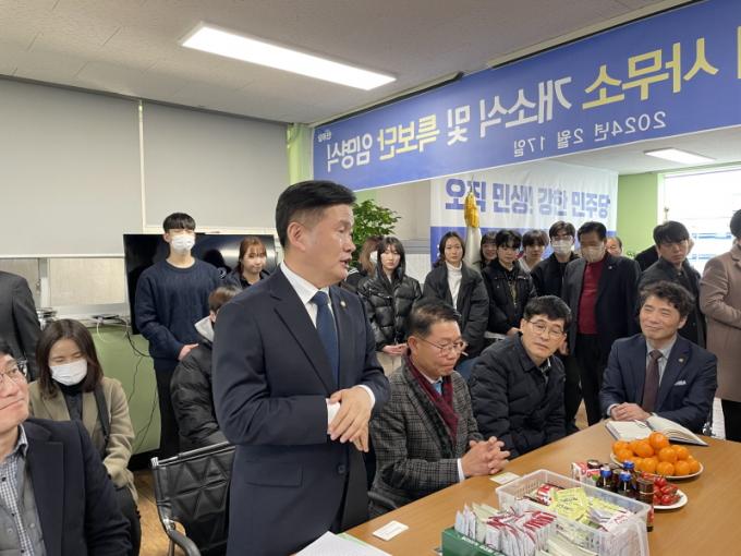 [µ¥Àϸ®Àü³² = ÃÖ¿µ¹Î ±âÀÚ] ´õºÒ¾î¹ÎÁÖ´ç ¼µ¿¿ë ±¹È¸ÀÇ¿ø(¼øÃµ¡¤±¤¾ç¡¤°î¼º¡¤±¸·Ê(À»))ÀÌ Áö¿ª Áֹΰú ´ç¿ø µî 500¿© ¸íÀÇ ÁöÁöÀÚ°¡ ¸ðÀÎ °¡¿îµ¥ Á¦22´ë ±¹È¸ÀÇ¿ø¼±°Å ¼±°Å»ç¹«¼Ò(±¤¾ç½Ã ÁßÃ̱æ 13) °³¼Ò½ÄÀ» ¼ºÈ²¸®¿¡ ¸¶ÃÆ´Ù.