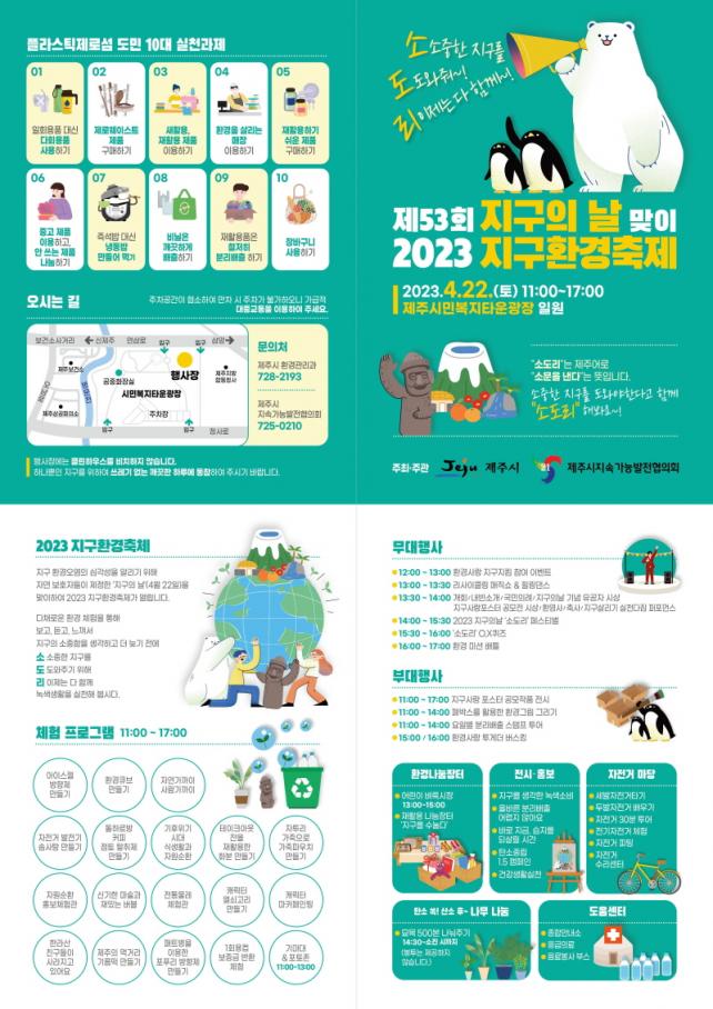 [µ¥Àϸ®Àü³² = ÃÖ¿µ¹Î ±âÀÚ] Á¦Áֽô Á¦53ȸ Áö±¸ÀÇ ³¯À» ¸Â¾Æ, ¿À´Â 22ÀÏ(Åä) Á¦Áֽùκ¹ÁöŸ¿î ±¤Àå¿¡¼ ¡°¼Ò¼ÒÁßÇÑ Áö±¸¸¦ µµµµ¿ÍÁà~! ¸®ÀÌÁ¦´Â ´Ù ÇÔ²²~!¡± ¶ó´Â ÁÖÁ¦·Î¡º2023 Áö±¸È¯°æÃàÁ¦¡»¸¦ °³ÃÖÇÑ´Ù.