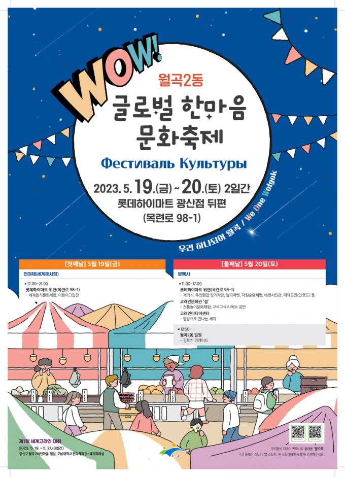 ¿ù°î2µ¿ µµ½ÃÀç»ý ´ºµô»ç¾÷ ÀÏȯÀ¸·Î ¡®WOW(We, One Wolgok, ¿ì¸® ÇϳªµÇ¾î ¿ù°î)¡¯¶ó´Â ÁÖÁ¦·Î ¼±Áֹΰú ÀÌÁֹΠÈÇÕÀÇ ÀåÀ» ¸¶·ÃÇÑ´Ù. 19ÀÏ ¿ÀÈÄ 5½Ã È·ÁÇÑ Á¶¸í°ú ÇÔ²² ¼¼°èå¨(¾ß)½ÃÀåÀÌ Àü¾ßÁ¦¸¦ ¹àÈù´Ù. °í·ÁÀÎ, º£Æ®³², ű¹, Çʸ®ÇÉ, ³×ÆÈ, Àεµ µî 8°³ ³ª¶óÀÇ À½½Ä À¯·¡¸¦ ¹è¿ì°í, Áñ±æ ¼ö ÀÖ´Â À½½Ä¹®È üÇèºÎ½º°¡ ¿î¿µµÈ´Ù.