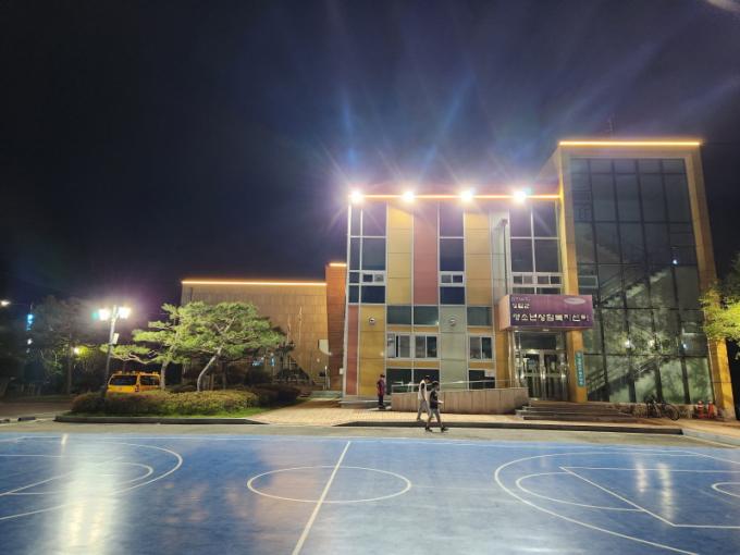 ¿µ¾Ï±º(±º¼ö ¿ì½ÂÈñ)ÀÌ ÃÖ±Ù¿¡ ¼³Ä¡ÇÑ ¿µ¾ÏÀ¾ÀÇ Ã»¼Ò³â¼ö·Ã°ü °Ç¹° ¶óÀÎ Á¶¸í°ú ½Ç¿Ü ³ó±¸Àå Á¶¸íÀÌ »ç¶÷µé¿¡°Ô ¾ÈÀüÇÔ, Áñ°Å¿ò µîÀ» Á¦°øÇϰí ÀÖ´Â °Í. ƯÈ÷, ¹æ°ú ÈÄ ¿îµ¿°ú ¿©°¡¸¦ Áñ±æ °ø°£ÀÌ ºÎÁ·Çϴٴ û¼Ò³â°ú ÁֹΠÀǰßÀ» ¹Ý¿µÇØ Á¶¼ºÇÑ ½Ç¿Ü ³ó±¸Àå Á¶¸íÀº, ¹ú½áºÎÅÍ Ã»¼Ò³â »çÀÌ¿¡¼ ÀÔ¼Ò¹®À» Ÿ°í ÀÖ´Ù.