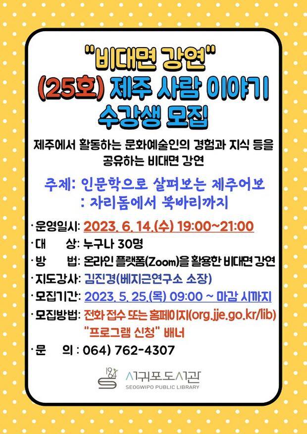 [µ¥Àϸ®Àü³² = ÃÖ¿µ¹Î ±âÀÚ] Á¦ÁÖµµ¼°ü(°üÀå ¾çÀ±»ï) ¼±ÍÆ÷µµ¼°ü¿¡¼´Â Á¦ÁÖ¿¡¼ Ȱµ¿ÇÏ´Â ¹®È¿¹¼úÀÎÀÇ °æÇè°ú Áö½Ä µîÀ» Áö¿ªÁֹε鿡°Ô Àü´ÞÇÏ°í °øÀ¯ÇϰíÀÚ (25È£)¡®Á¦ÁÖ »ç¶÷ À̾߱⡯¼ö°»ýÀ» ¸ðÁýÇÑ´Ù.